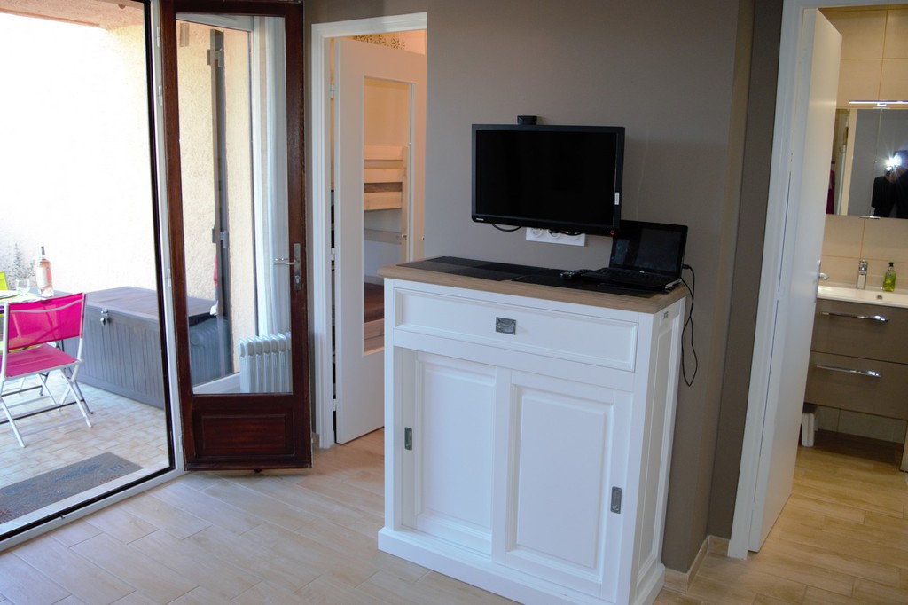 Charmant studio cabine de 20 m² en rez de jardin entièrement rénové. Jolie plage de sable a 150m, petits commerces a proximité.