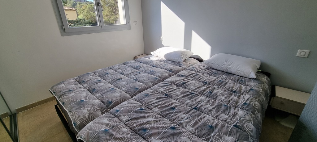 Au DRAMONT, quartier de Saint Raphaël venez séjournez dans ce spacieux et lumineux appartement de 95m² à 5 minutes a pied de la plage du TIKI et du Débarquement. Terrasse de 25m² avec aperçu mer et vue sur le Massif des Maures. Restaurants, bars et divers petits commerces a proximité. Le logement vous offre une grande cuisine ouverte entièrement équipée donnant sur la pièce a vivre et la terrasse. Vous disposerez de 2 chambres couchages 160 et 2x90x200. Une grande salle d'eau avec double vasques est a votre disposition. Wc indépendant. Le logement bénéficie d'une entrée totalement privée. Il est entièrement climatisé et vous propose 2 places de stationnement gratuites.