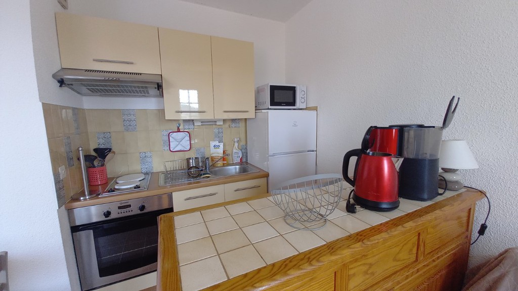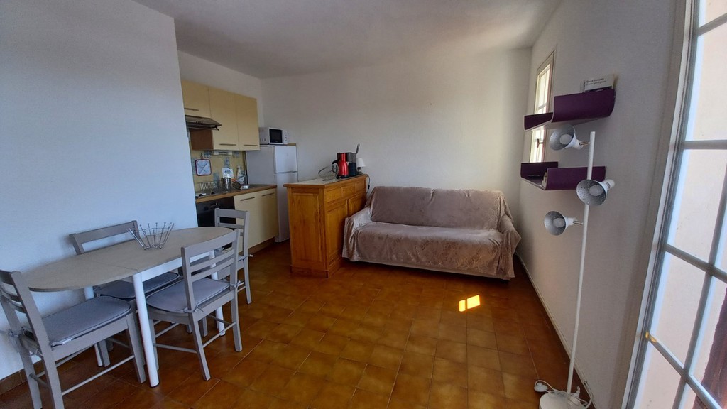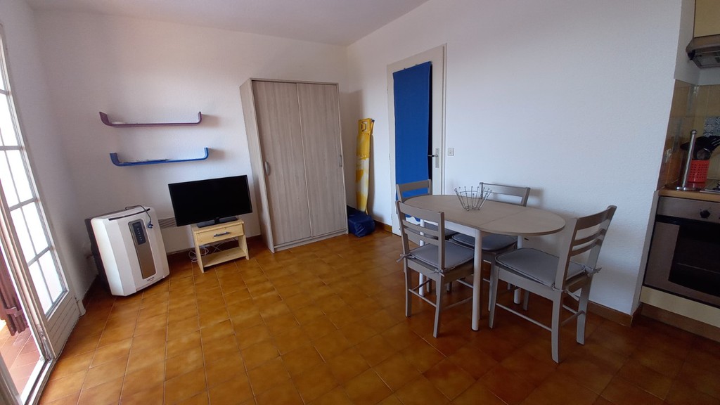 Il se compose d'une entrée avec deux lits de 90 superposés, d'une salle de bain avec wc, d'une kich'net équipée donnant sur une pièce a vivre comprenant un canapé convertible type Rapido 140 s'ouvrant sur un balcon de 7m². Place de parking attitrée