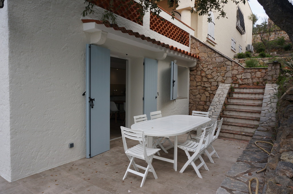 Située entre Saint Raphaël (10km) et Cannes (25Km), la villa est à proximité immédiate des criques (60m) et des plages de sables. Les terrasses offrent une vue magnifique sur la baie des