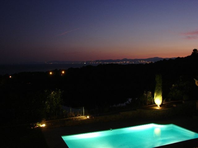 Spacieuse et comprenant 7 pièces et dependances sur beau terrain plat et arboré, cette villa beneficie d'une belle piscine de 10x5m et d'une vue panoramique sur la mer et les lacs du dramont.